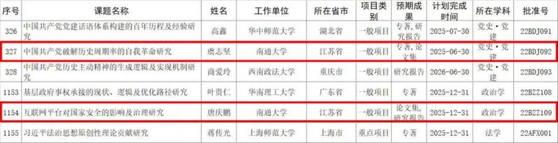 9月30日,全国哲学社会科学工作办公室网站公布了2022年度国家社科基金年度项目的立项结果名单,公司2项课题获立项。唐庆鹏教授“互联网平台对国家安全的影响及治理研究”、虞志坚副教授“中国共产党破解历史周期率的自我革命研究”喜人在列。